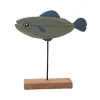 Handmade carved wooden fish figurine yellow decor